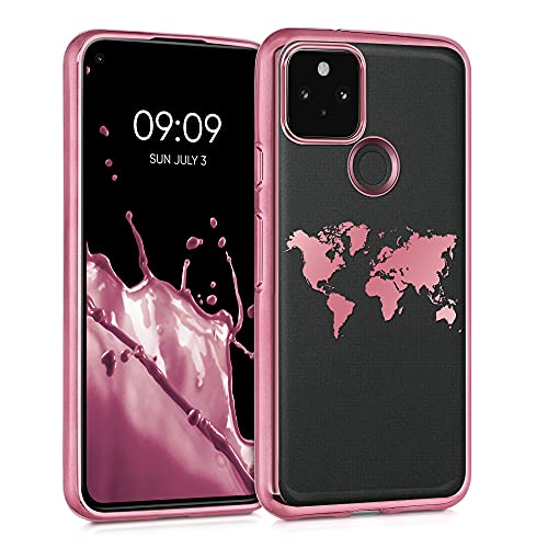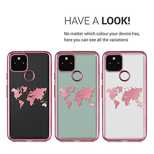Kwmobile Cover compatibile con Google Pixel 5 - Custodia protettiva Cover in silicone TPU cristallo trasparente - Back Cover Case cellulare Sagoma Mondo oro rosa/trasparente/oro rosa