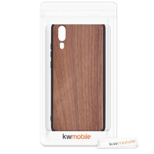 Kwmobile Cover Compatibile con Huawei P20 - Custodia Rigida in Legno con Bumper in Silicone TPU - Cover Smartphone - marrone scuro