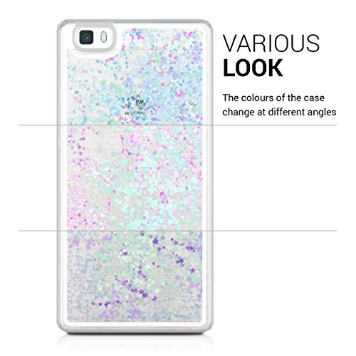 Kwmobile Cover Compatibile con Huawei P8 Lite (2015) - Custodia Rigida con Liquido Hard Case Protettiva Flowing Liquid - con Glitter in Movimento in Blu Chiaro/Trasparente