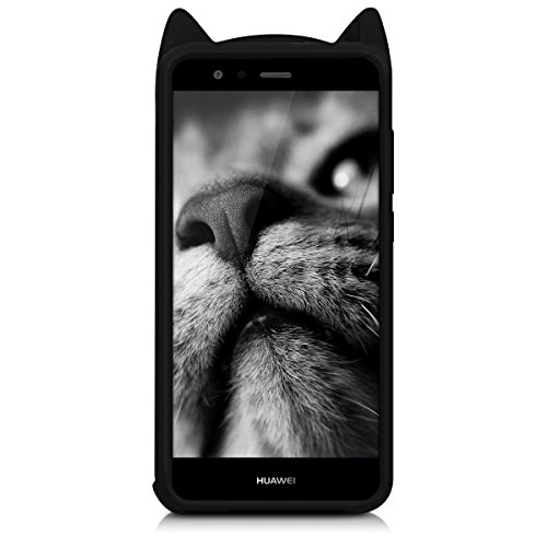 Kwmobile Cover Compatibile con Huawei P10 Lite - Custodia Cover in Silicone TPU - Copertina Protettiva Back Case Backcover - Gatto Nero/Bianco