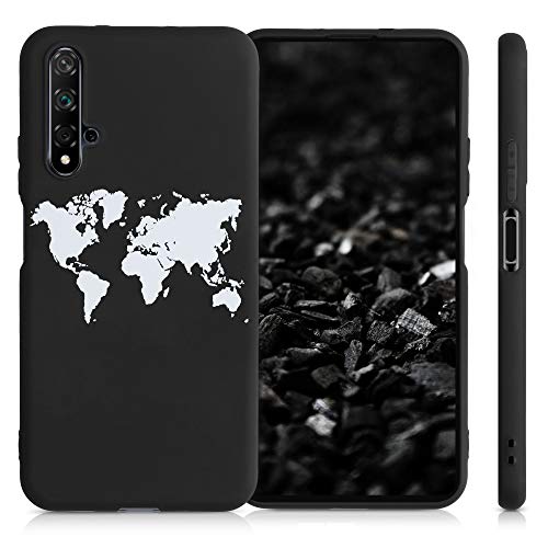 Kwmobile Cover Compatibile con Huawei Nova 5T - Custodia in Silicone TPU - Cover Protettiva Soft Case - Sagoma Mondo bianco/nero