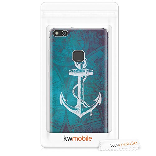 Kwmobile Cover Compatibile con Huawei P10 Lite - Back Case Custodia in Silicone TPU Trasparente Ancora Bianco/Blu