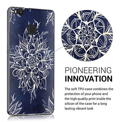 Kwmobile Cover compatibile con Huawei P9 Lite - Back Case Custodia in silicone TPU trasparente Batik bianco/blu scuro