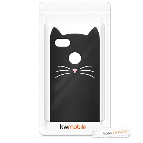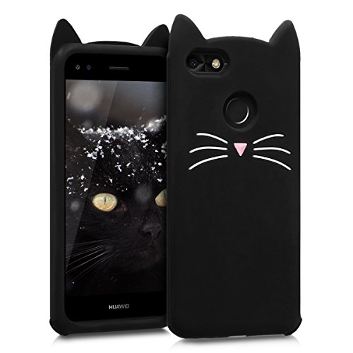 Kwmobile Cover Compatibile con Huawei Y6 PRO (2017) / Enjoy 7 - Custodia in Silicone TPU - Copertina Protettiva Back Case Backcover - Gatto Nero/Bianco
