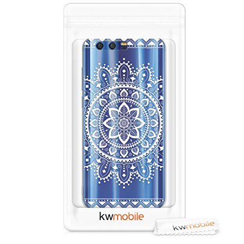 Kwmobile Cover Compatibile con Huawei Honor 9/9 Premium - Custodia in Silicone TPU - Backcover Protettiva Cellulare Girasole Azteco Bianco/Trasparente