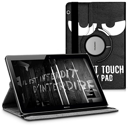Kwmobile Cover compatibile con Huawei MediaPad T3 10 - Custodia Cover per tablet rotazione 360° stand similpelle - Don't touch my Pad bianco/nero