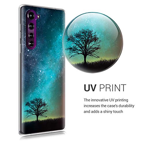 Kwmobile Cover compatibile con Motorola Edge (2020) - stampa UV in TPU bordo trasparente - Custodia protettiva - Natura e spazio blu/grigio/nero