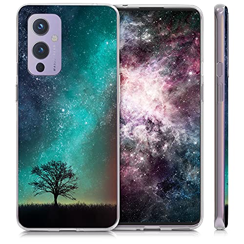 Kwmobile Cover compatibile con OnePlus 9 (EU/NA Version) - stampa UV in TPU bordo trasparente - Custodia protettiva - Natura e spazio blu/grigio/nero
