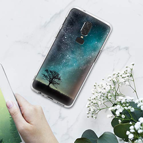 Kwmobile Cover Compatibile con OnePlus 6 - Stampa UV in TPU Bordo Trasparente - Custodia Protettiva - Natura e Spazio Blu/Grigio/Nero