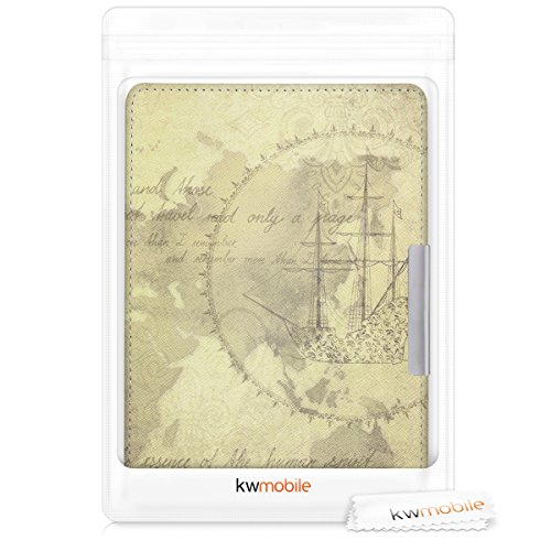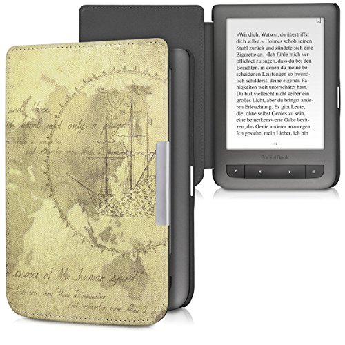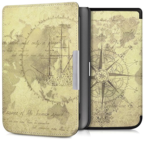 Kwmobile Cover compatibile con Pocketbook Touch Lux 3/Basic Lux/Basic Touch 2 - Custodia in pelle PU - Flip Case per eReader - Mappamondo vintage marrone/marrone chiaro