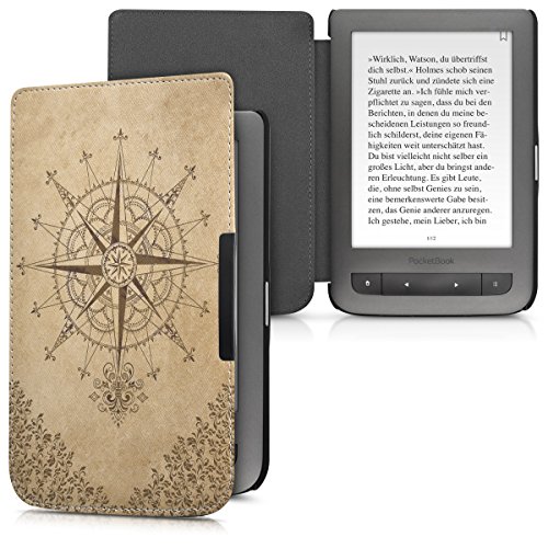 Kwmobile Cover Compatibile con Pocketbook Touch Lux 3/Basic Lux/Basic Touch 2 - Custodia in Pelle PU - Flip Case per eReader - Compasso Barocco Marrone Scuro/Beige