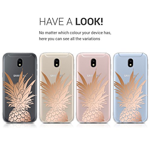 Kwmobile Cover Compatibile con Samsung Galaxy J5 (2017) DUOS - Back Case Custodia Posteriore in Silicone TPU per Smartphone - Backcover Ananas nel cespuglio Oro Rosa/Trasparente