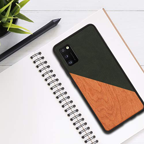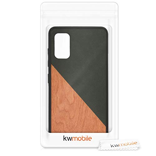 Kwmobile Cover Compatibile con Samsung Galaxy A41 - Custodia Protettiva in Plastica Dura Rivestita in Ecopelle e Legno - con Bumper Antiurto in Silicone - Legno Bicolore Verde Scuro/Marrone