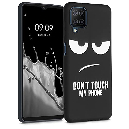 Kwmobile Cover Compatibile con Samsung Galaxy M12 - Custodia in Silicone TPU - Cover Protettiva Soft Case - Don't touch my phone bianco/nero