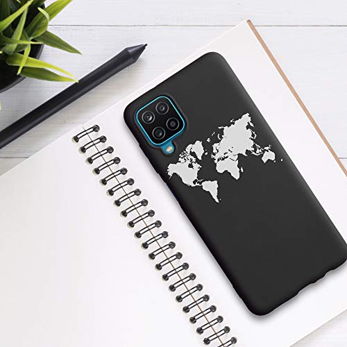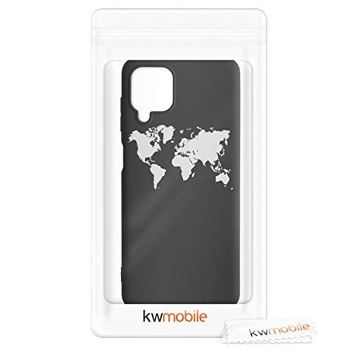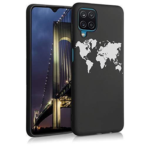 Kwmobile Cover Compatibile con Samsung Galaxy A12 - Custodia in Silicone TPU - Cover Protettiva Soft Case - Sagoma Mondo bianco/nero