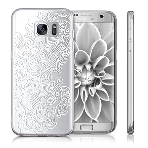 Kwmobile Cover Compatibile con Samsung Galaxy S7 edge - Custodia in Silicone TPU - Cover Protettiva Soft Case - Mandala etnico bianco/trasparente