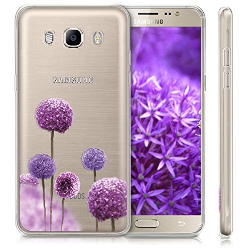 Kwmobile Cover Compatibile con Samsung Galaxy J5 (2016) DUOS - Custodia in Silicone TPU - Back Case Cover Protettiva Cellulare Fiore Palla Fucsia/Viola/Trasparente