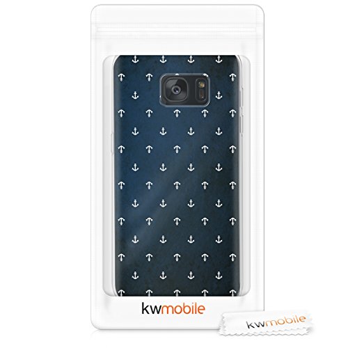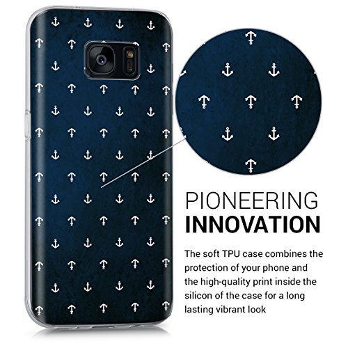 Kwmobile Cover Compatibile con Samsung Galaxy S7 - Back Case Custodia in Silicone TPU Trasparente Motivo Ancora Bianco/Blu Scuro