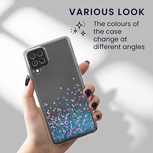 Kwmobile Cover compatibile con Samsung Galaxy A22 4G- Back Cover in silicone TPU con liquido - Case trasparente e Glitter in movimento blu chiaro/trasparente