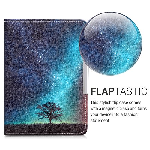 Kwmobile Cover Compatibile con Tolino Shine 2 HD - Custodia in Pelle PU - Flip Case per eReader - Natura e Spazio Blu/Grigio/Nero