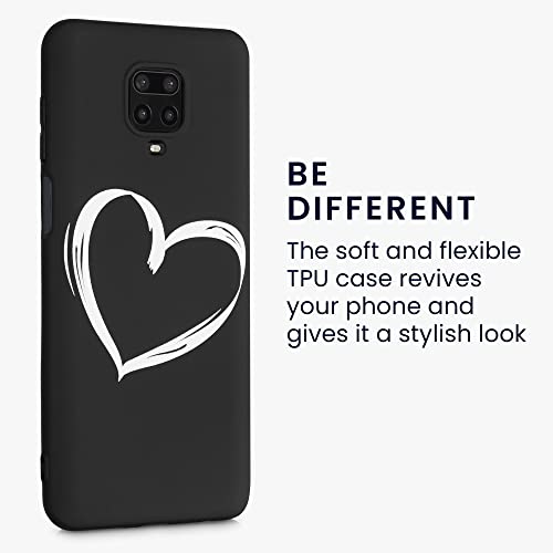 Kwmobile Cover Compatibile con Xiaomi Redmi Note 9S / 9 Pro / 9 Pro Max - Custodia in Silicone TPU - Cover Protettiva Soft Case - Cuore bianco/nero