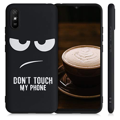 Kwmobile Cover Compatibile con Xiaomi Redmi 9A / 9AT - Custodia in Silicone TPU - Cover Protettiva Soft Case - Don't touch my phone bianco/nero