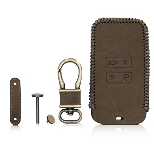 Kwmobile Cover copri-chiave compatibile con Renault con 4 tasti Smart Key (solo Keyless Go) - Protezione chiavi macchina in vera pelle - Custodia protettiva - Bussola legno marrone