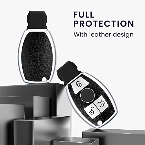 Kwmobile Cover Coprichiave Compatibile con Mercedes Benz con 3 tasti - Foderina Chiave Auto Effetto Pelle - Bumper Antiurto e Protezione Tasti argento/nero