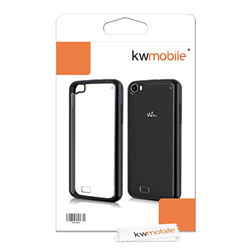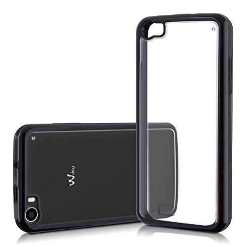 Kwmobile Cover per Wiko Lenny - Custodia rigida trasparente per cellulare - Back Case cristallo in plastica nero trasparente