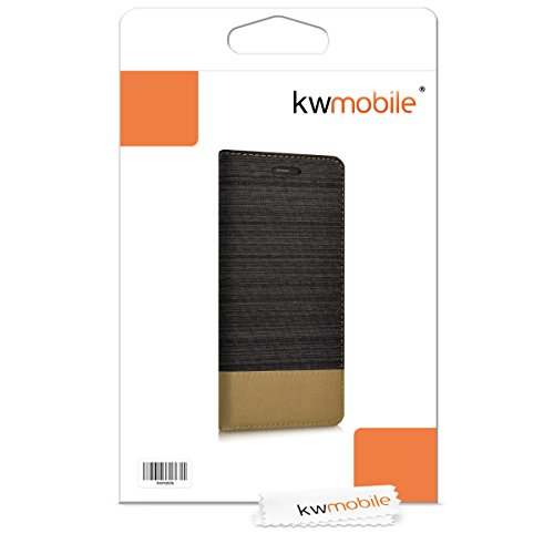 Kwmobile Cover Flip per OnePlus X (5.0") - Custodia a libro protettiva per cellulare in simil pelle e tessuto antracite marrone