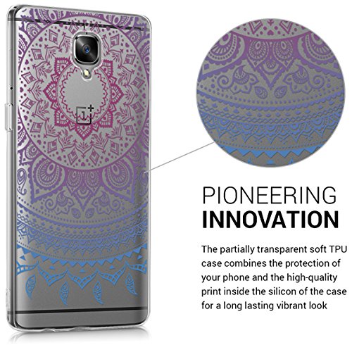 Kwmobile Cover per OnePlus 3 / 3T - Back Case Custodia in Silicone TPU per Cellulare - Cover Trasparente Design Sole Indiano Blu Fucsia Trasparente