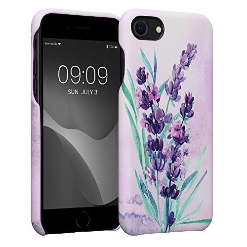 Kwmobile Cover Hard Case in pelle PU e plastica rigida compatibile con smartphone Apple iPhone SE (2022) / iPhone SE (2020) / iPhone 8 / iPhone 7 - Back Cover protettiva - Fiori di Lavanda