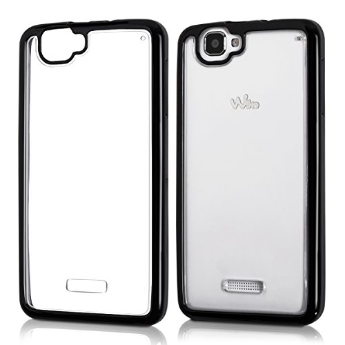 Kwmobile Cover per Wiko Rainbow 3G / 4G - Custodia rigida trasparente per cellulare - Back Case cristallo in plastica nero trasparente