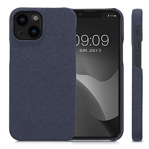 Kwmobile Cover Rigida Compatibile con Apple iPhone 13 Mini - Custodia Cellulare - Back Cover Case Protettiva Cover in Tessuto - Blu Scuro