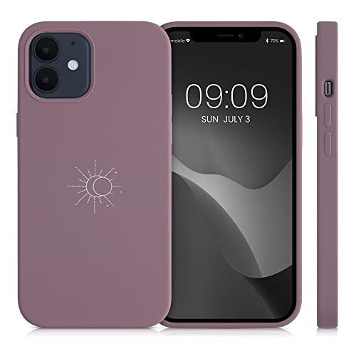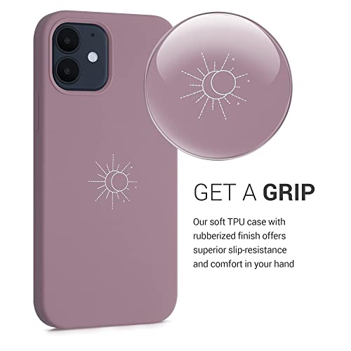 Kwmobile Cover in silicone compatibile con Apple iPhone 12 / iPhone 12 Pro - con protezione per fotocamera - Custodia in silicone TPU e microfibra - Back Cover Sole & Luna bianco/uva