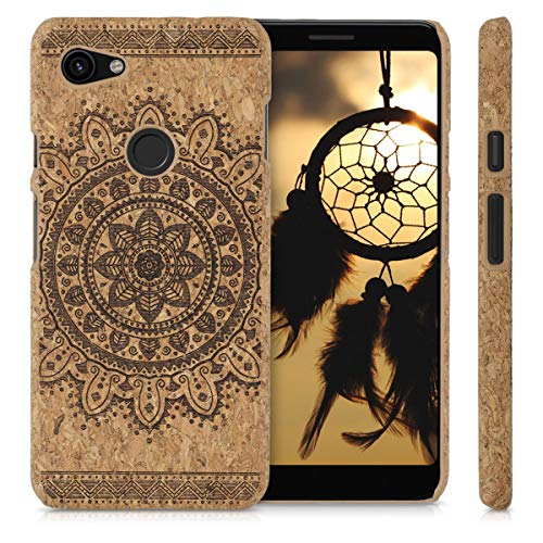 Kwmobile Cover in sughero compatibile con Google Pixel 3a XL - Backcover protettiva - Case protezione rigida smartphone - Girasole azteco marrone scuro/marrone chiaro