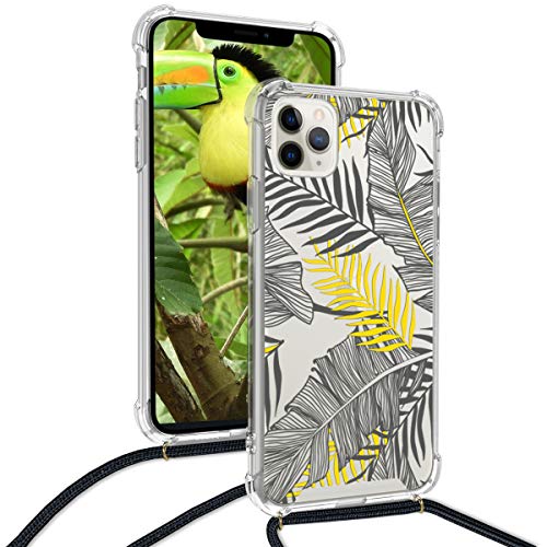 Kwmobile Cover a Tracolla Compatibile con Apple iPhone 11 PRO Max - Back Case in Silicone - Cover con Laccio Collo - Custodia con Cordino - Giallo/Grigio/Trasparente Palme