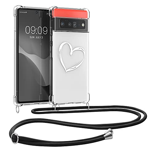 Kwmobile Cover Tracolla Compatibile con Google Pixel 6 Pro - Cover Laccio Collo - Custodia Cordino bianco/trasparente Cuore