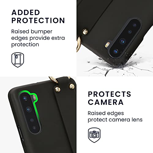 Kwmobile Cover a Tracolla Compatibile con OnePlus Nord - Back Case in Silicone nero - Custodia con Cordino e Passante Cinta