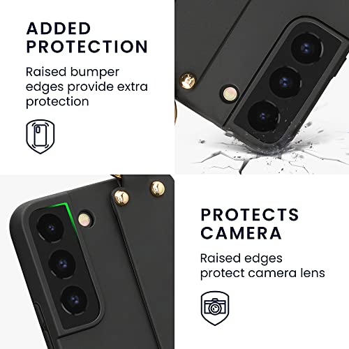 Kwmobile Cover a Tracolla Compatibile con Samsung Galaxy S22 - Back Case in Silicone nero - Custodia con Cordino e Passante Cinta