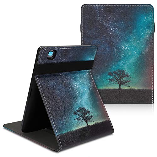 Kwmobile Custodia Cinturino Mano Compatibile con KoboAura H2O Edition 2 Cover - Custodia eReader Stand - Blu/Grigio/Nero Natura e Spazio