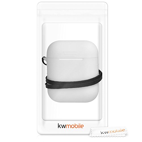 Kwmobile Custodia compatibile con Apple AirPods - Protezione Custodia porta auricolari in silicone TPU con cordino e apertura ricarica bianco