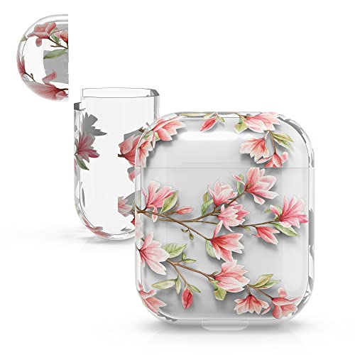 Kwmobile Custodia compatibile con Apple Airpods 1 & 2 - Protezione resistente porta auricolari - Cover in plastica Magnolie rosa/bianco/trasparente