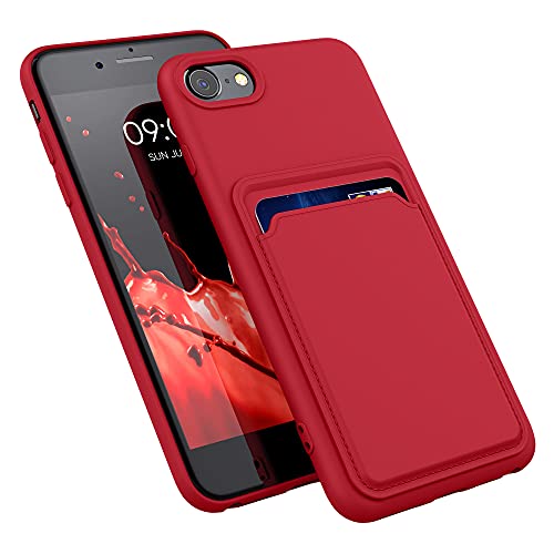 Kwmobile Custodia Compatibile con Apple iPhone SE (2022) / iPhone SE (2020) / iPhone 8 / iPhone 7 Cover - Back Case Cellulare con Slot Porta Carte - Morbida in Silicone TPU rosso