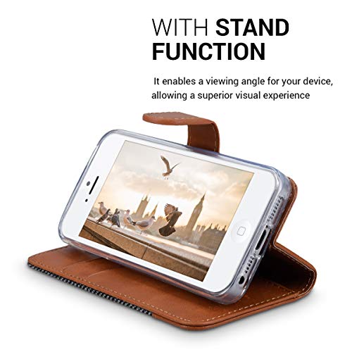 Kwmobile Custodia Compatibile con Apple iPhone SE (1.Gen 2016) / iPhone 5 / iPhone 5S Cover Portafoglio - Case Chiusura Magnetica Portacarte Tessuto Similpelle antracite/marrone