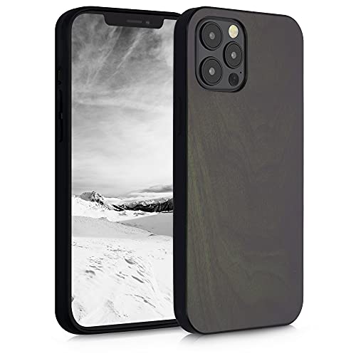 Kwmobile Custodia Compatibile con Apple iPhone 12 PRO Max Cover - Protezione in Legno per Smartphone - Back Case con Bumper in Silicone TPU - Verde Scuro