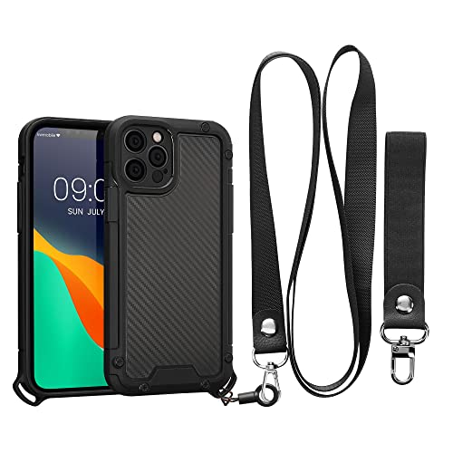 Kwmobile Custodia Compatibile con Apple iPhone 12 PRO - Cover Silicone - Bumper Antiurto Moschettone Laccio Polsino e Girocollo Nero/Trasparente Matt