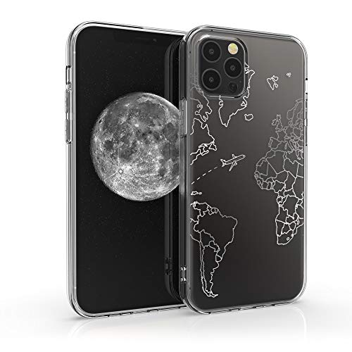 Kwmobile Custodia Compatibile con Apple iPhone 12 Pro Max - Cover Silicone TPU - Protezione Posteriore - Travel & Explore argento/trasparente