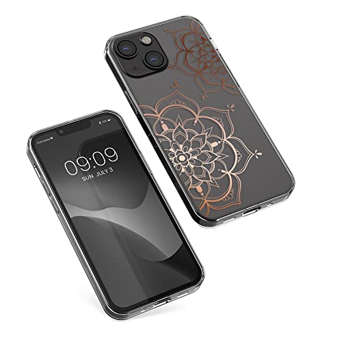 Kwmobile Custodia Compatibile con Apple iPhone 13 mini - Cover Silicone TPU - Protezione Posteriore - Fiori Gemelli oro rosa/trasparente