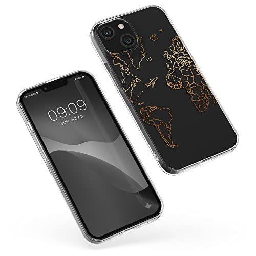 Kwmobile Custodia Compatibile con Apple iPhone 14 Plus - Cover Silicone TPU - Protezione Posteriore - Travel & Explore oro rosa/trasparente